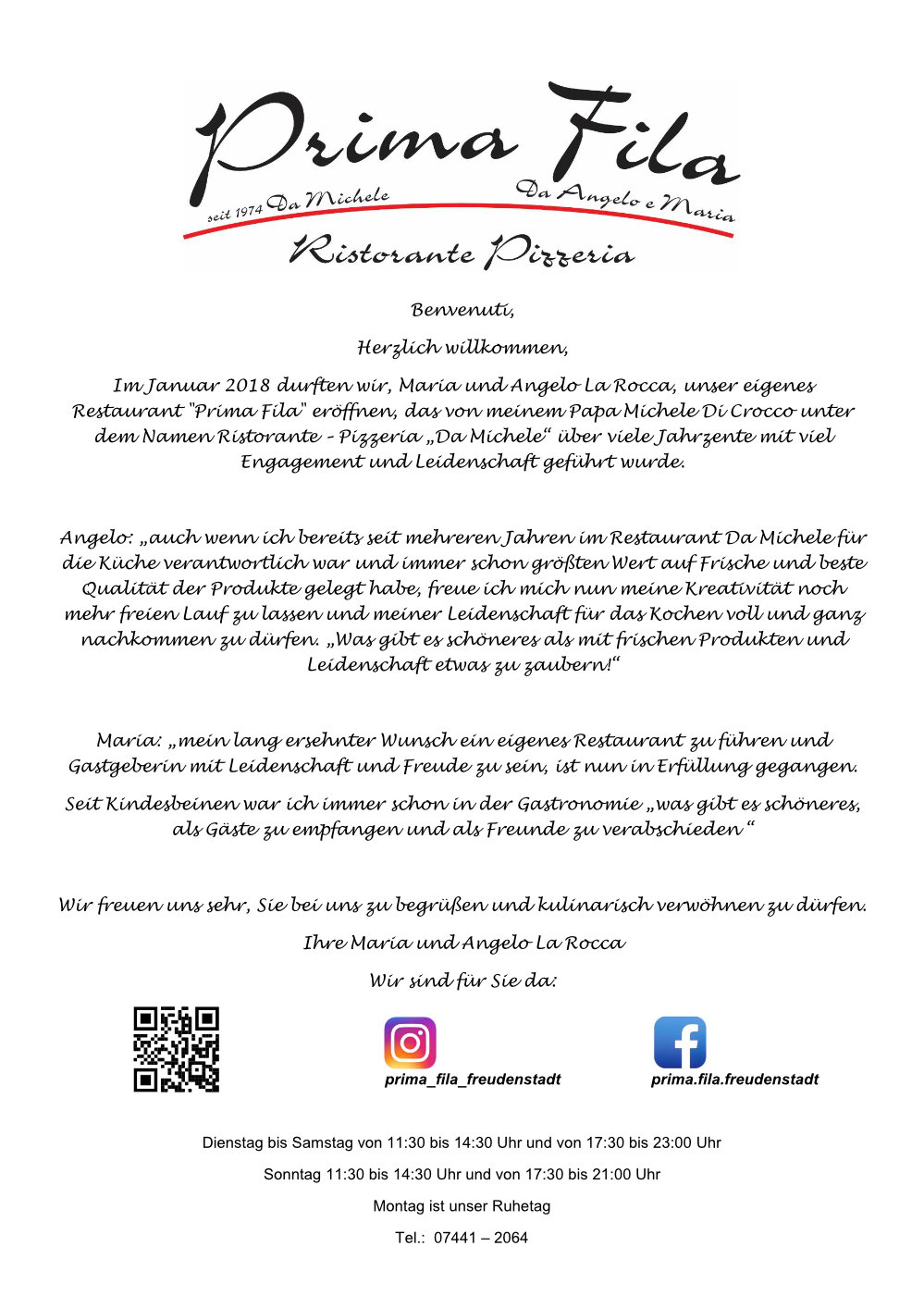 im Januar 2018 durften wir, Maria und Angelo La Rocca, unser eigenes Restaurant "Prima Fila" eröffnen.